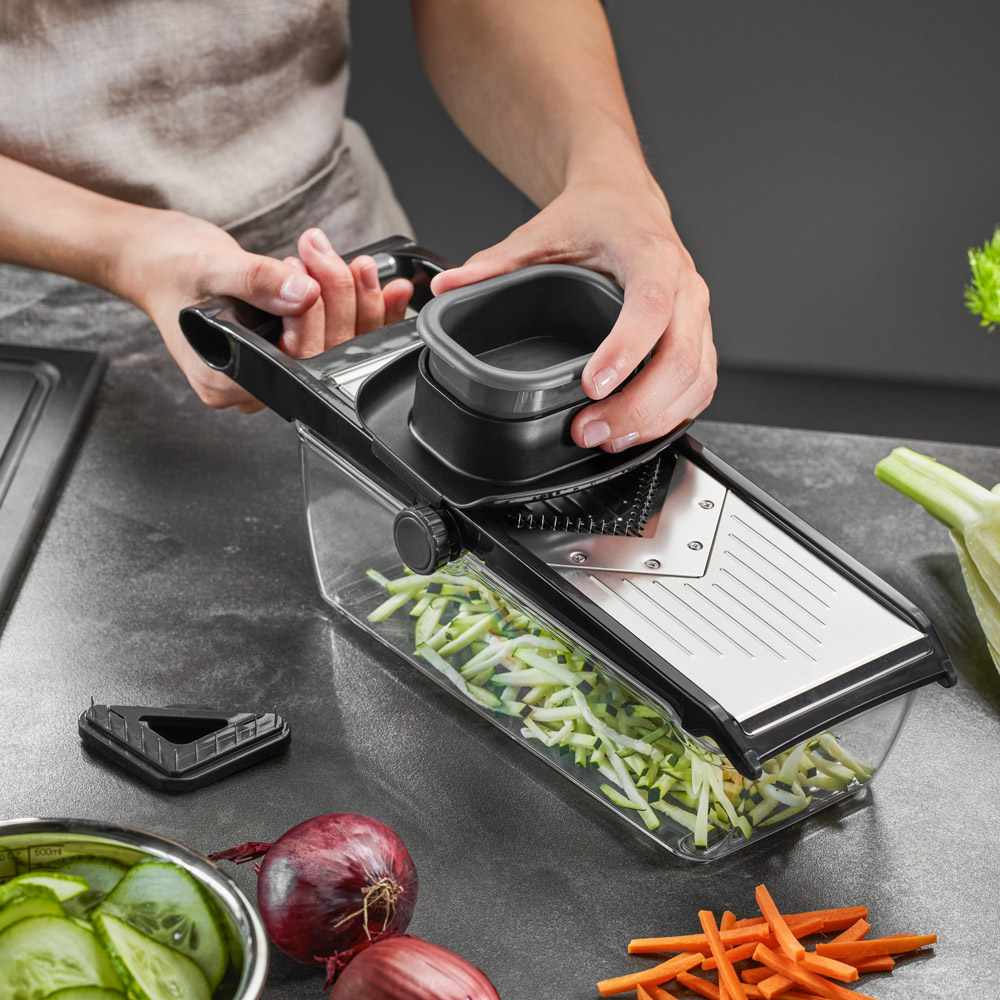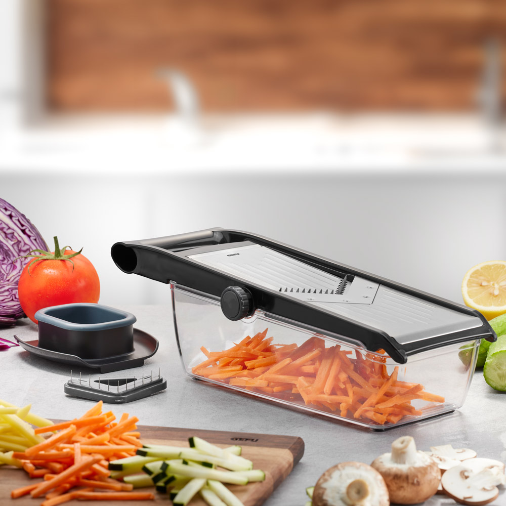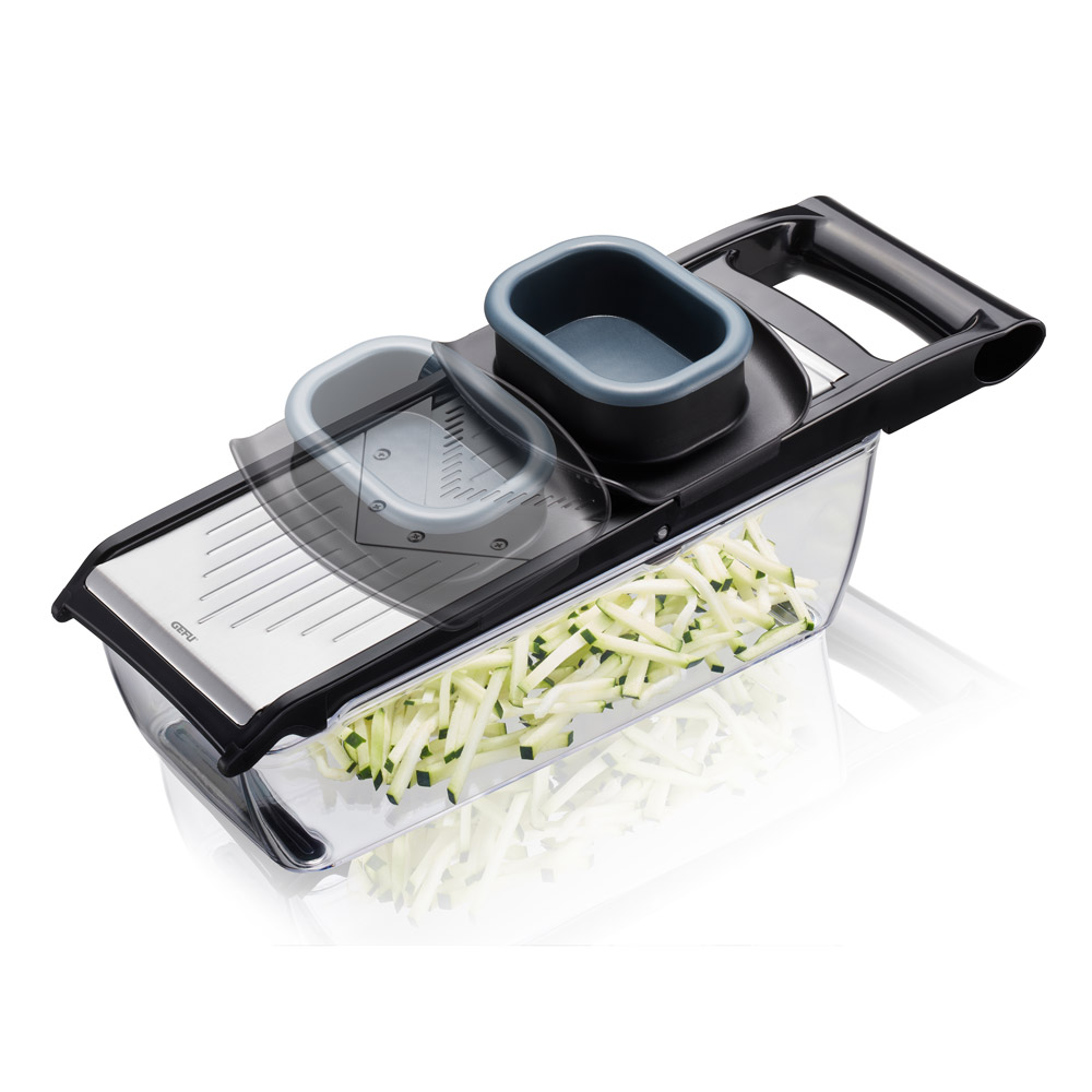 COLLECT on üliterav ja praktiline viilutaja, millel on kogumiskarp. 5 reguleeritavat lõikepaksust vahemikus 1-5 mm. 2 julienne lõikeotsikut: 3 mm ja 6 mm ribade jaoks.