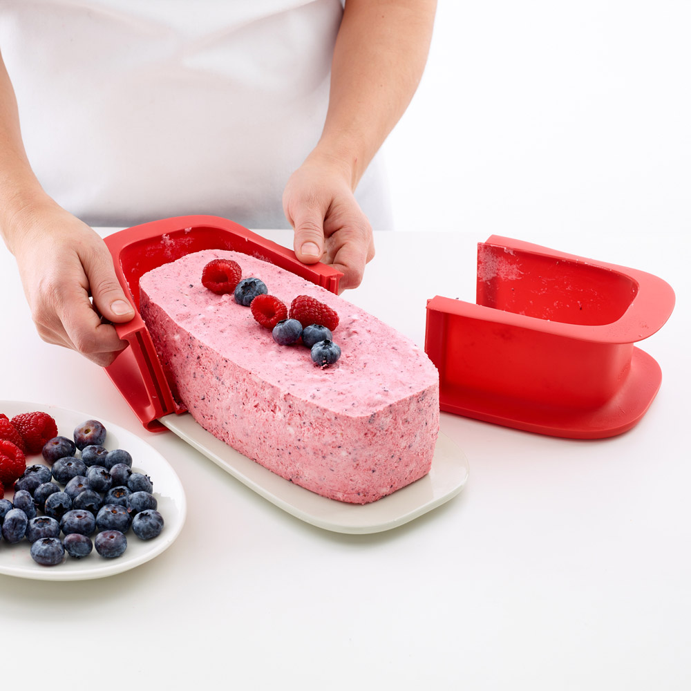 Silikoonist lahtikäiv küpsetusvorm koos keraamilise alusega, mida saab kasutada serveerimisalusena. Sobib keeksi ja leiva küpsetamiseks.