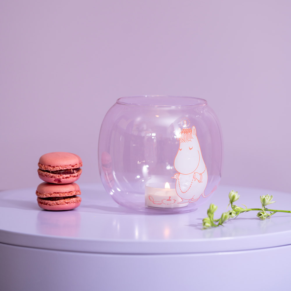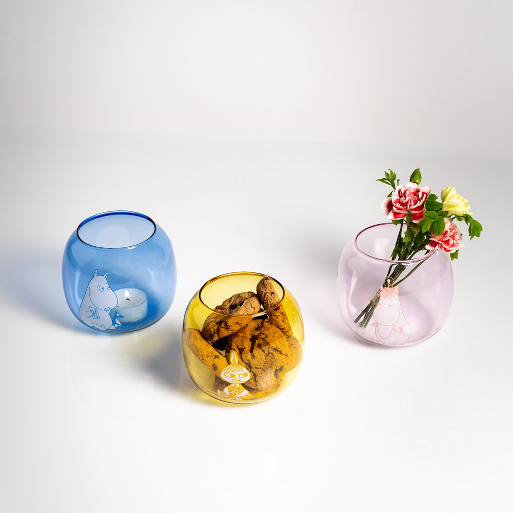 Küünlaalus on tehtud kuumakindlast borosilikaatklaasist, mis annab tootele vastupidavuse, samas on see kerge ja klaar. Võib kasutada kausina väikeste maiustuste jaoks või vaasina. Sarjal on Tove Janssoni illustratsioonid. Toode on valmistatud käsitsi ja seetõttu on iga toode unikaalne.