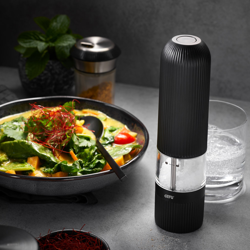 Elektriline soola- või pipraveski SPEZIA töötab nupuvajutusega. Integreeritud LED-valgustus. Mahutavus kuni 40 g piprateri või 80 g soola. Keraamiline mehhanism. Komplektis 6 AAA patareid.